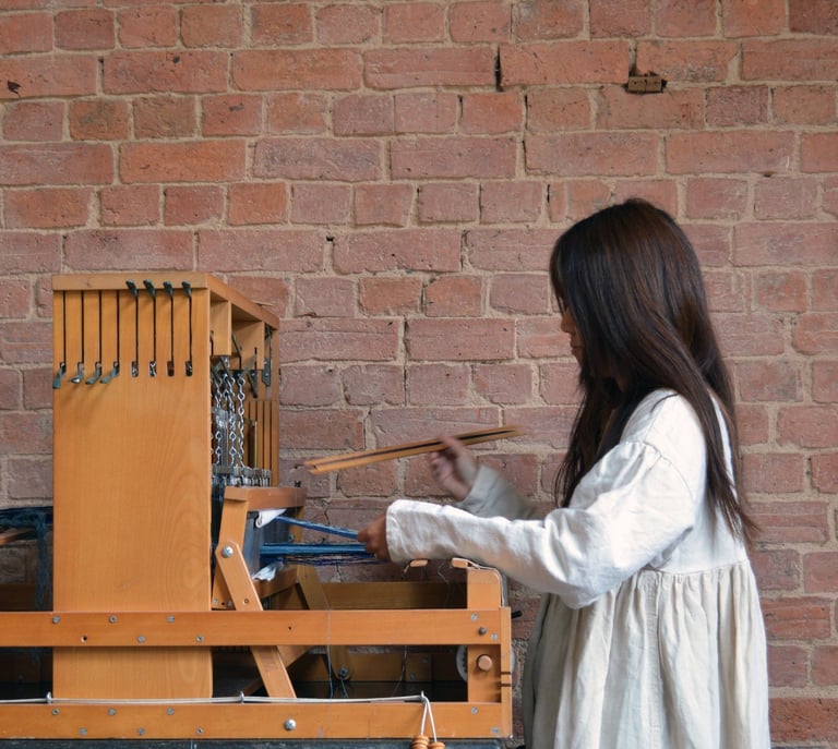 Since 2021, Emi has been creating and releasing a slow fashion collection that highlights textiles crafted entirely by hand with her small team in England. Alongside this work, she has received commissions and engaged in collaborations, bringing her expertise in natural dyeing and traditional techniques into unique, sustainable projects.