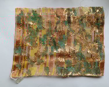 Weaving with copper yarns is one of Emi's unique skills. She has created special weavings with copper and natural dyed silk yarns.