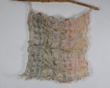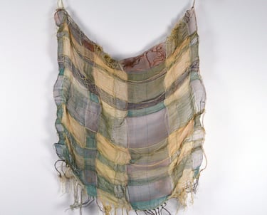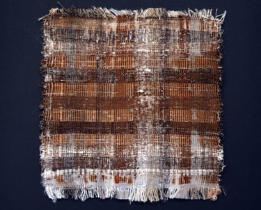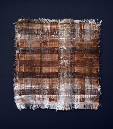 Emi created a series of black‑and‑white weavings for a group exhibition at the Freeweavers Studio in London. She produced black and grey tones on silk using natural dyes combined with iron, and she achieved a sabi—rust‑like—effect on stainless‑steel yarn. Together, these pieces explored how time can slowly transform textiles, revealing changes in colour, texture, and surface as materials age and react to their environment.