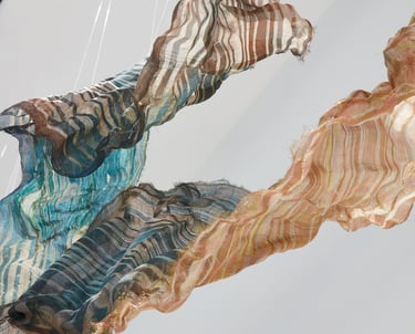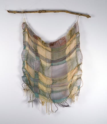 The earth moves, the sky changes, the tree grows and slowly it absorbs the sunlight. The moss is gradually transpiring in the shade. Individuals accept individuals and they bond with each other. Emi is exploring the passage of time through textiles. Inspired by time-honored textiles and techniques, Emi has developed cooper weaves from natural dyed materials, encompassing a strong focus on natural, sustainable, and ethical materials. These works have been explored onwards from her previous piece "Passing of the Time” 2013. The collection was presented at the Peggy Jay Gallery, Hampstead Museum.