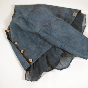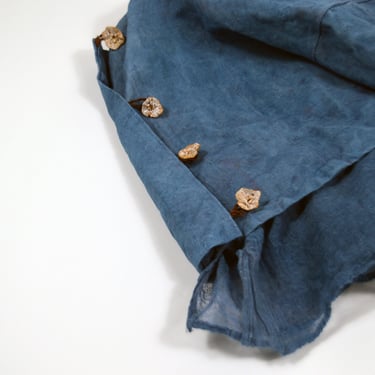 The cloth used have diverse origins, being found in antique/vintage markets in England, Europe and Japan on her textile research trips. Emi also hand weaves some cloth, using special materials, such as Kibiso silk yarn and hand spun linen yarn, for instance.