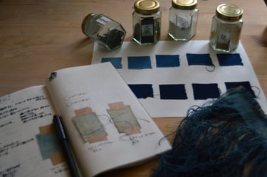 During her final year at university, Emi struggled to create a turquoise colour using only natural materials. It was a very difficult colour to achieve, and she spent months testing different materials. After many attempts, she finally succeeded and used the colour in her weaving. This discovery became an important moment in her journey with natural dyes.