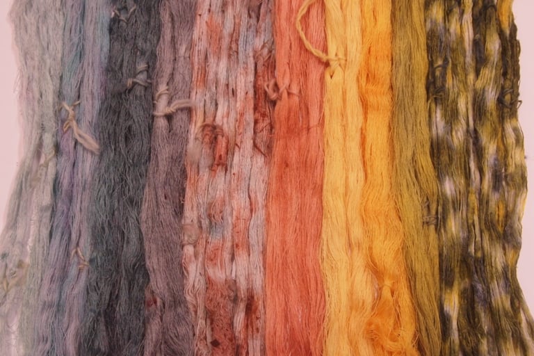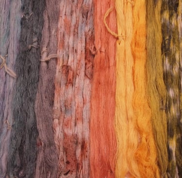 Strongly influenced by traditional textiles and techniques that introduced her into the world of natural dyeing, she started researching natural dyeing by using flowers, plants and vegetables that she would find around her when she was an art student in London. She has researched, experimented and developed several different techniques of natural dyeing and created her own colour palettes only using natural dyes. Like mixing paints, she can make colours with her own special recipes. All of her textiles are made using silk yarns which are afterwards dyed with natural dyes from her own recipes.