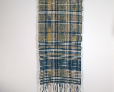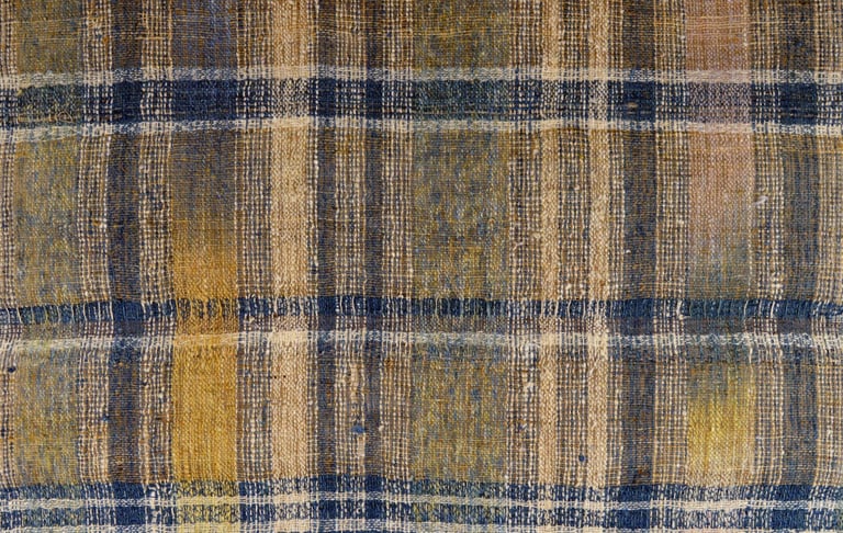 One of the oldest handwoven fabrics in Japan is called “TAFU”, which is traditionally woven using Kouzo (paper mulberry), Fuji (wisteria vine), Kuzu (Japanese arrowroot), Cyoma (ramie), amongst others. These yarns are made by using fibers from the stem, under the hard external bark. The extraction requires a lot of processing and for this reason, TAFU almost disappeared in Japan. Emi has been always interested in traditional techniques and she often wonders how the very first yarns were made. This piece is woven using Kuzu yarn from Japanese farmer and hand spun linen from Slovenia.