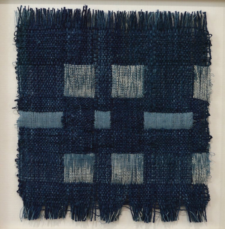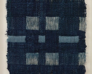 Emi has created a series of woven works that explore the beauty and depth of indigo. Using a variety of natural materials, she experiments with different types of indigo dyes, each carrying its own history and character. Her practice includes: Japanese sukumo indigo: a traditional fermentation dye, Home-grown indigo plants: cultivated and processed locally, bringing a personal and sustainable touch. Ryukyu indigo from Okinawa Island: cultural heritage and Organic indigo pigments.